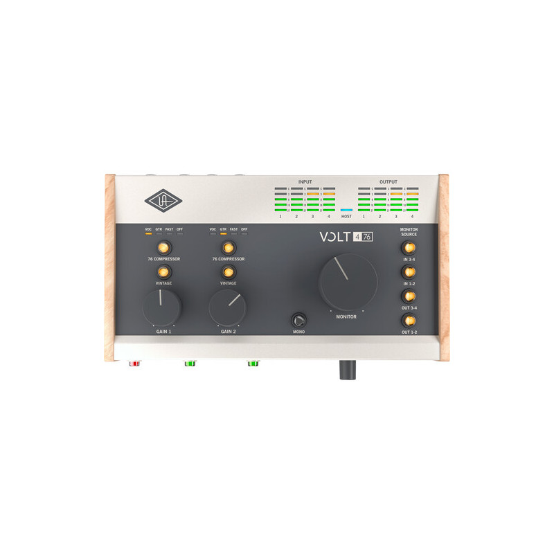 Аудио интерфейсът Universal Audio Volt 476 е четириканален USB аудио интерфейс, създаден за музиканти и продуценти, които искат повече входове, аналогов характер и гъвкав контрол върху динамиката. Моделът предлага 4 аналогови входа и 4 изхода, 24-bit / 192 kHz резолюция и вграден компресор, вдъхновен от класическия 1176, интегриран директно в хардуера.