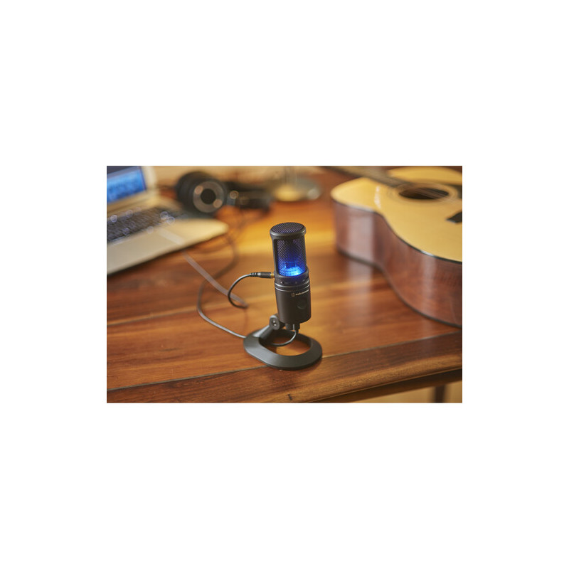 Микрофонът Audio-Technica AT2020USB-X е USB кондензаторен микрофон с голяма диафрагма, проектиран за създатели на съдържание, стриймъри, подкастъри и музиканти, които търсят студийно качество на записа с директна цифрова връзка към компютър. Моделът използва electret condenser капсула с кардиоидна насоченост, което позволява фокусирано улавяне на гласа или инструмента отпред, като същевременно се намалява нежеланият околен шум.