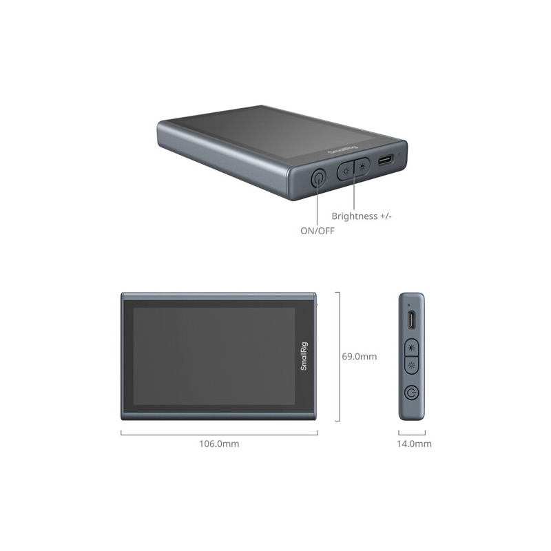 Изработен от алуминий, корпусът предлага здравина и устойчивост при минимално тегло. С размери 106 x 69 x 14 mm и тегло 129 g, SmallRig 4850 остава лек и удобен за мобилни конфигурации.