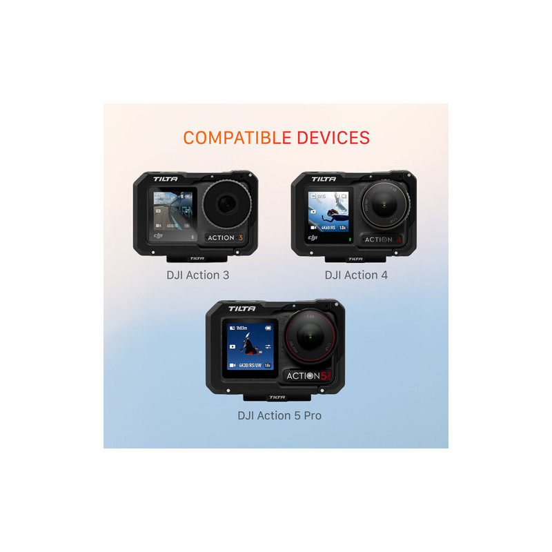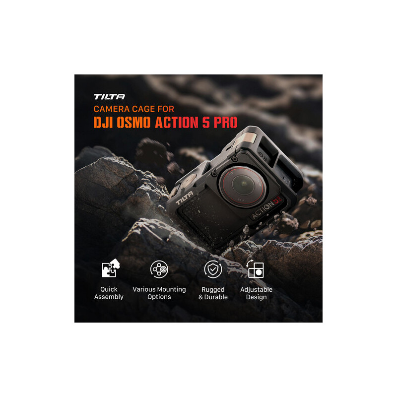 Аксесоарът Tilta Camera Cage Base Kit за DJI Osmo Action 5 Pro е защитна и разширителна клетка, предназначена да осигури по-голяма гъвкавост при работа с екшън камерата в професионална среда. Съвместима е също с Osmo Action 4 и Osmo Action 3, което я прави универсално решение за различни поколения от серията.