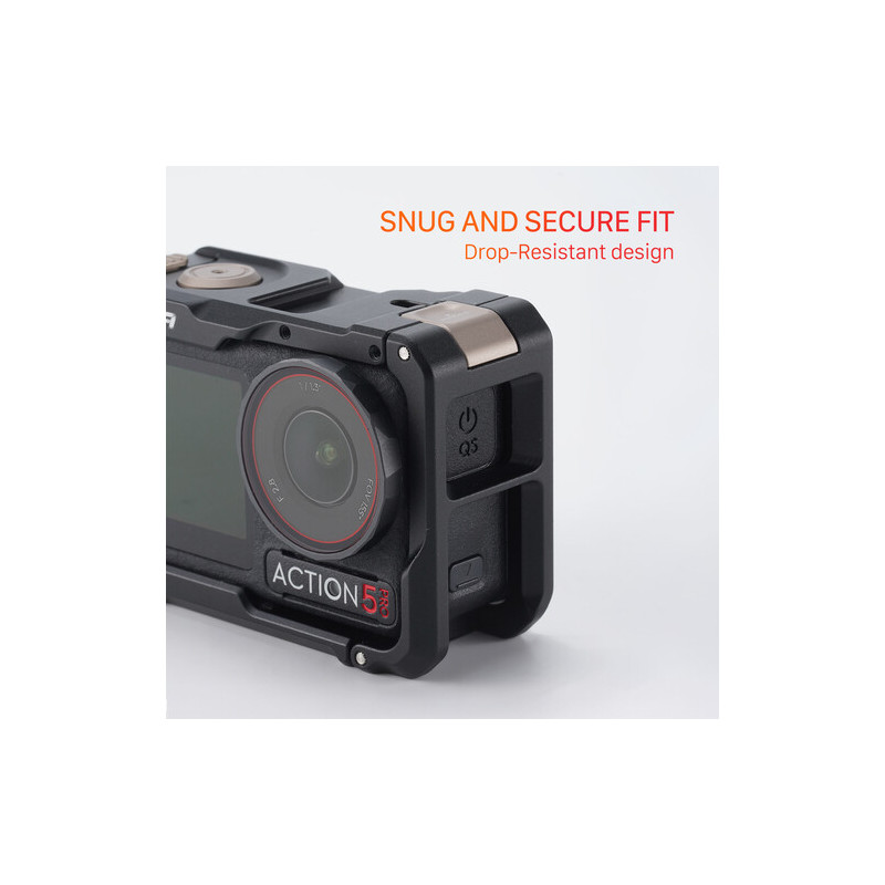 С компактни размери 11.9 x 8.9 x 7.1 cm и тегло 150 g, кейджът добавя минимален обем към камерата, като същевременно значително разширява функционалността ѝ. Черният завършек придава професионален и дискретен вид.
