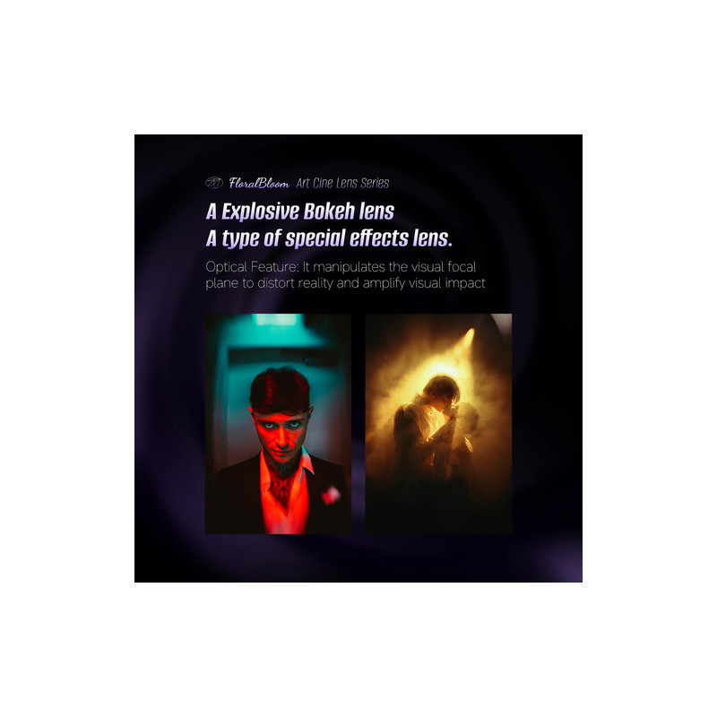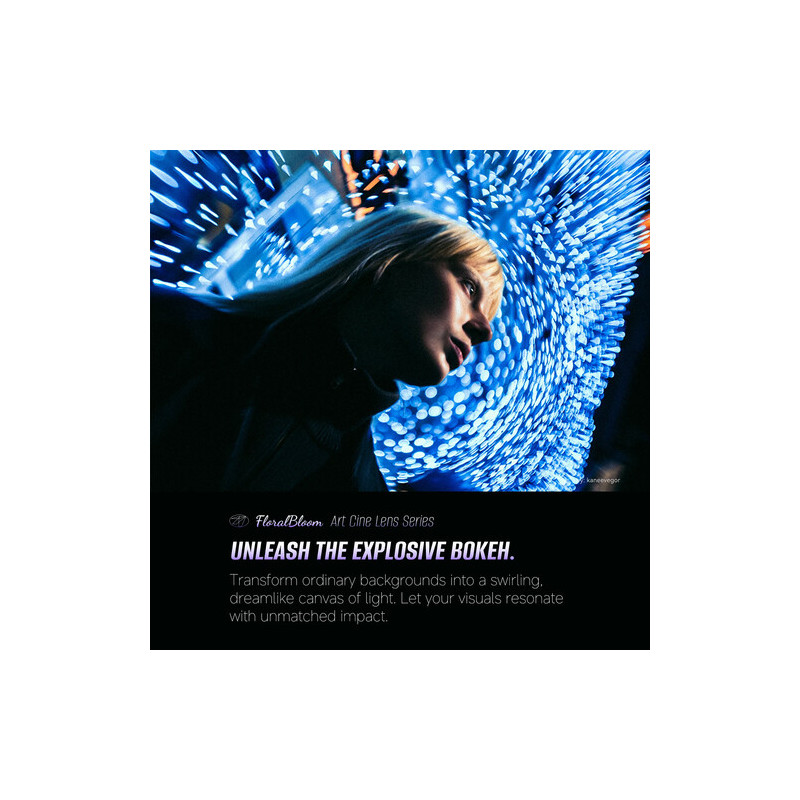 Обективът 7Artisans MF 57mm T2.9 FF Floral Bloom е специализиран кино обектив с ARRI PL байонет, създаден за full-frame сензори и насочен към оператори, които търсят по-артистичен и характерен визуален стил. Моделът е част от серията Floral Bloom, която се отличава с по-мек рендеринг на светлите зони и деликатен „bloom“ ефект около ярки източници на светлина. Това го прави подходящ за игрално кино, музикални видеа, рекламни продукции и проекти, където се търси по-атмосферен образ.