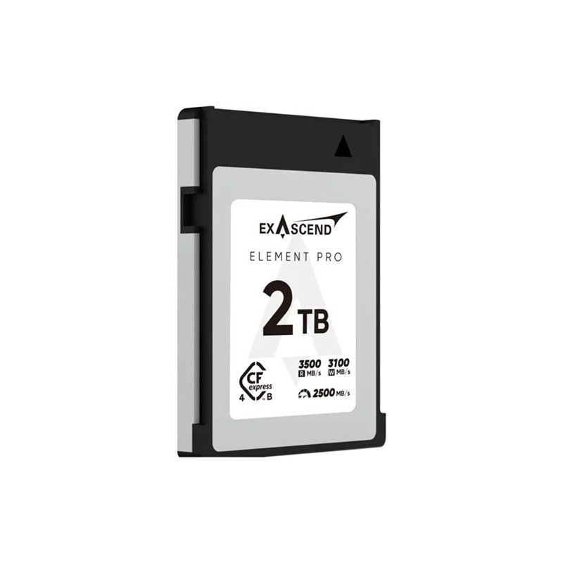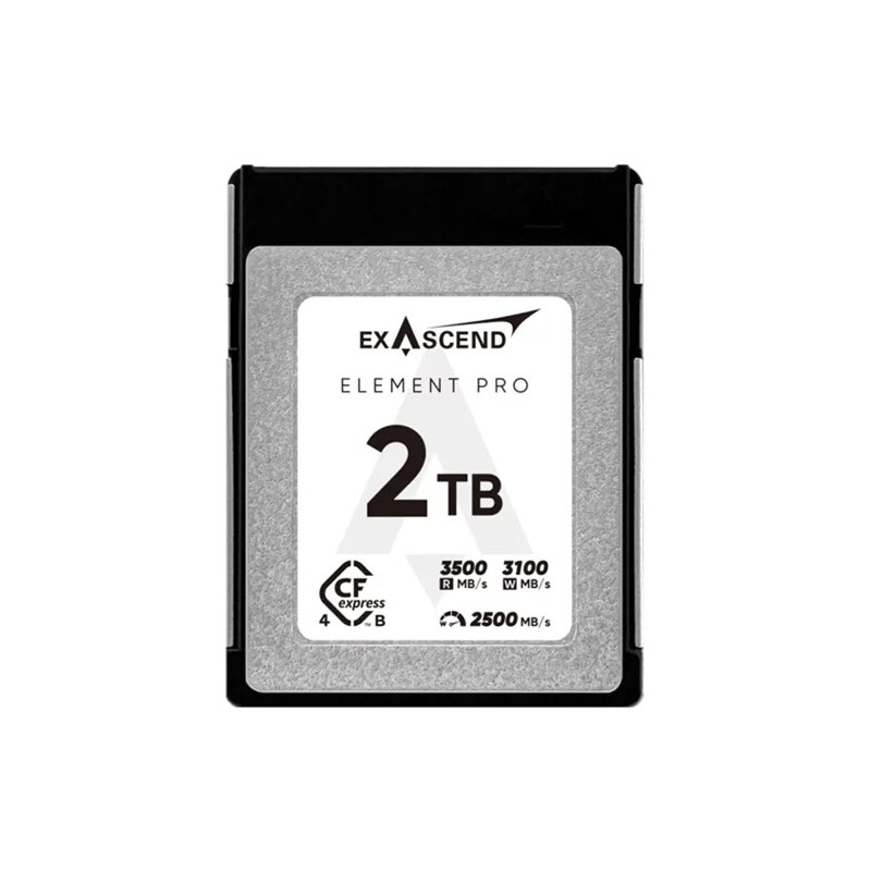 Картата памет Exascend CFexpress Element Pro 4.0 Type B 2TB е високопроизводителна карта памет, предназначена за професионални фото и видео камери, които изискват стабилна и бърза работа при запис на големи файлове. С капацитет от 2 TB този модел осигурява значително пространство за 4K, 6K и 8K видео, както и за серийна фотография с висока резолюция, без необходимост от честа смяна на носителя.