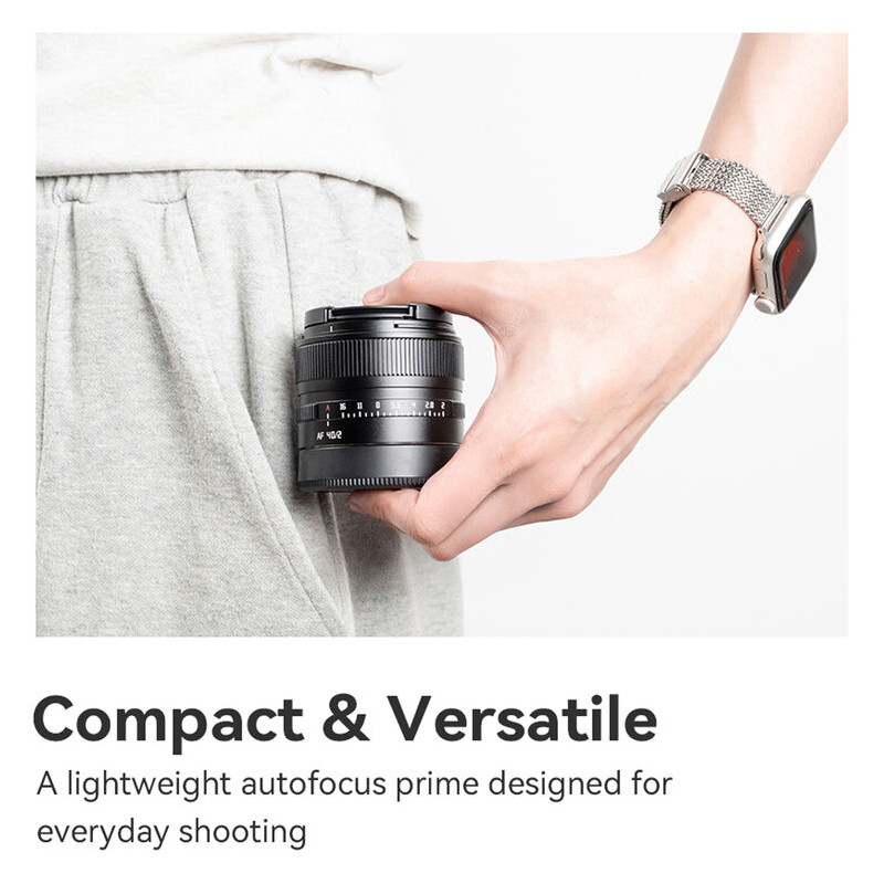 С диаметър 61 мм, дължина 44 мм и тегло 176 г, TTArtisan AF 40mm F/2 е изключително компактен и удобен за носене през целия ден. Филтърната резба е 52 мм, което позволява използване на широкоразпространени филтри.