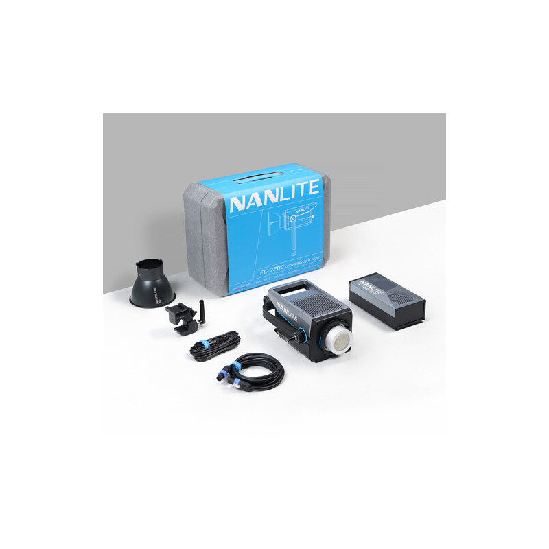 Осветлението Nanlite FC-720C е мощно насочено LED осветление, създадено за филмови продукции, телевизионни студиа, реклами и фотографски сетове, където се изисква висока светлинна мощност, прецизен контрол на цвета и широка съвместимост с модификатори. Осветителното тяло предлага RGBW цветова система и регулируема цветна температура от 2400K до 12 000K, което позволява създаване както на естествена дневна светлина, така и на наситени цветни ефекти.