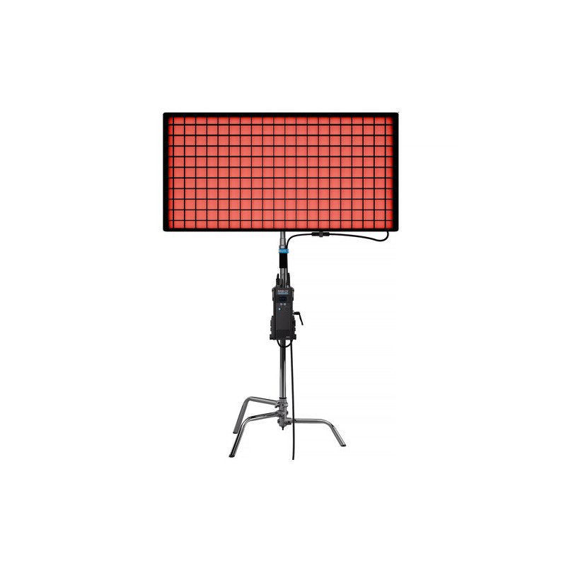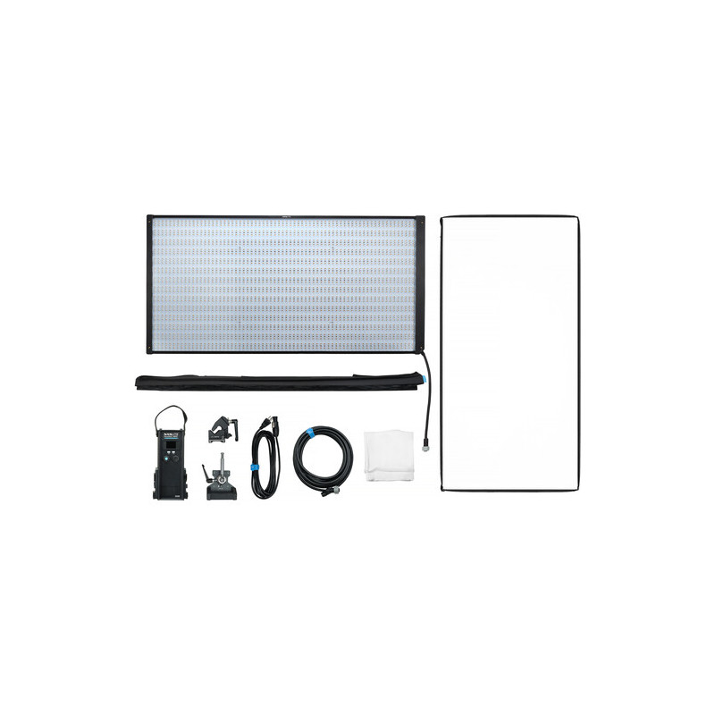 Комплектът включва софтбокс, грид (louver) и дифузионни филтри, които позволяват прецизно оформяне на светлината. Теглото на панела е 5.7 кг, а контролерът тежи 3.28 кг.
