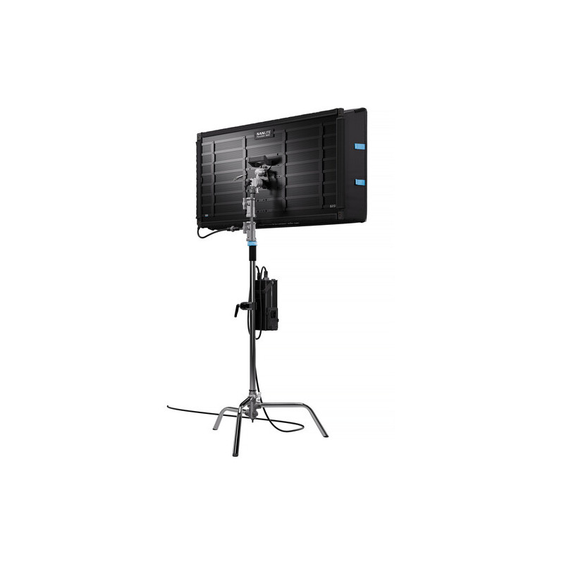 Панелът може да работи както с AC захранване, така и с две V-Mount батерии (не са включени), което го прави подходящ за мобилни снимачни условия. Монтажът се осъществява чрез стандартна 5/8" стойка.