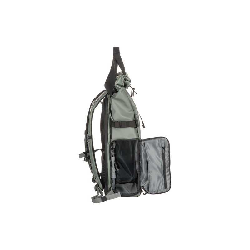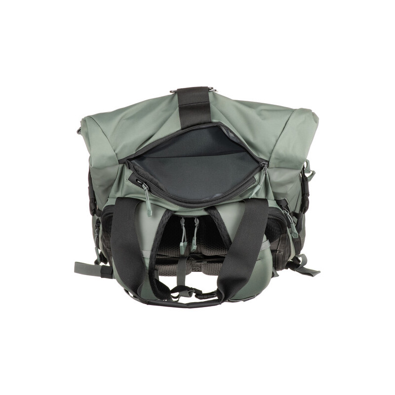 Основното отделение предлага пълно отваряне тип clamshell чрез заден панел, което позволява лесен достъп и удобна организация на оборудването. В допълнение раницата разполага със страничен бърз достъп с цип, който позволява изваждане на камера или аксесоар без сваляне. Това е особено полезно при динамична работа и снимане в движение.