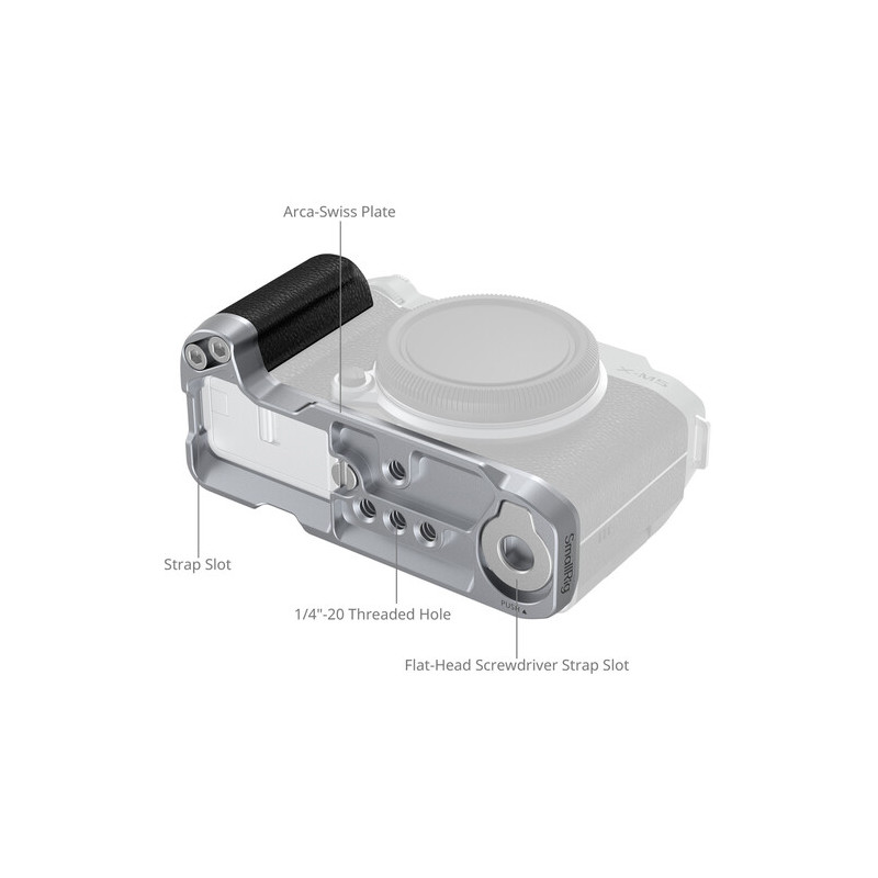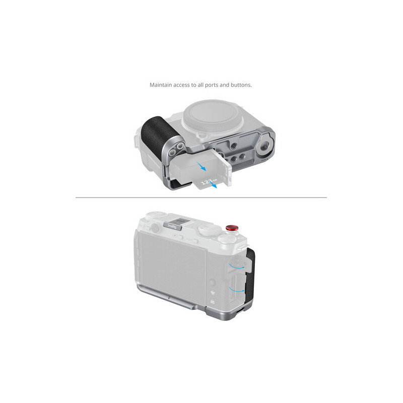 Аксесоарът SmallRig 4875 L-Shape Mount Plate With Silicone Handle за Fujifilm X-M5 е специално разработена за FUJIFILM X-M5 и предлага L-образен дизайн с вградена Arca-Swiss съвместима плоча, ергономичен силиконов грип и здрава алуминиева конструкция. Моделът разполага с множество 1/4"-20 резби за аксесоари, слот за ремък и осигурява стабилен монтаж към камерата. В комплекта са включени бутон за спусъка, капачка за hot shoe и ветробран за микрофон, което допълва функционалността още от първото използване.