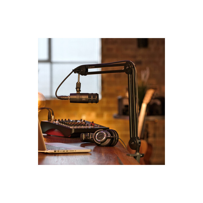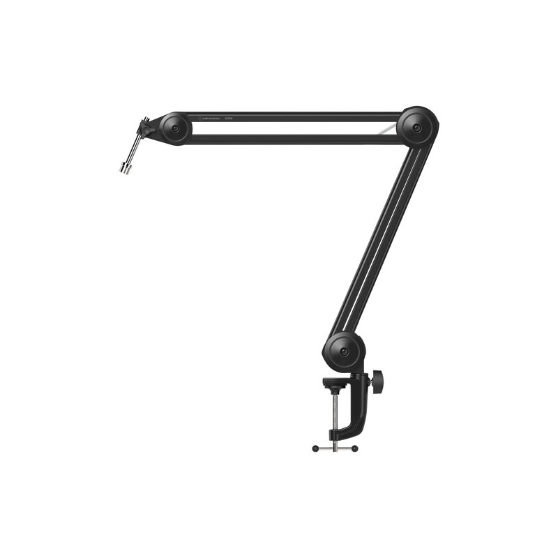 Аксесоарът Audio-Technica Microphone Boom Arm е универсално и стабилно рамо за микрофон, предназначено за стрийминг, подкастинг и домашни студиа, предлагащо 360° ротация, стандартна резба 5/8"-27 и монтаж към бюро с C-clamp. Моделът поддържа микрофони с тегло до 1 kg и позволява лесно позициониране благодарение на обхват от 432 mm и вертикална височина 425 mm. В комплекта са включени 4 клипса за USB кабели, 4 клипса за XLR кабели и стабилен монтажен clamp, което осигурява подредена и функционална работна среда още от самото начало.