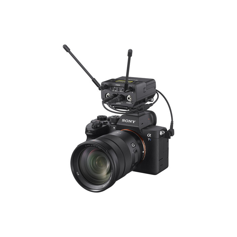 Аудио приемникът Sony URX-P41D/K33 Dual Channel Portable Audio е професионален двуканален безжичен аудио приемник за камера, създаден за работа със системите Sony UWP-D, предлагащ аналогова UHF технология с честотен диапазон от 536.125 до 607.875 MHz, обхват до 100 метра и възможност за едновременен прием на два независими аудио сигнала. Моделът използва технология с двойно независимо приемане на сигнал чрез две външни антени, разполага с 2772 честоти с автоматично сканиране, NFC и IR синхронизация с един бутон, както и вграден 4-канален миксер за гъвкаво управление на аудиото. Оборудван е с OLED дисплей, два заключващи се 3.5 mm TRS балансирани изхода, вход за жичен микрофон и изход за слушалки, като предлага захранване чрез 2x AA батерии (до 4.5 часа) или USB-C.