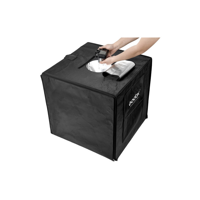 Godox LSD80 Light Tent LED е с размери 40x40x40 cm и разполага с две диодни ленти, два фона и дифузна повърхност за получаване на мека светлина, без сенки.