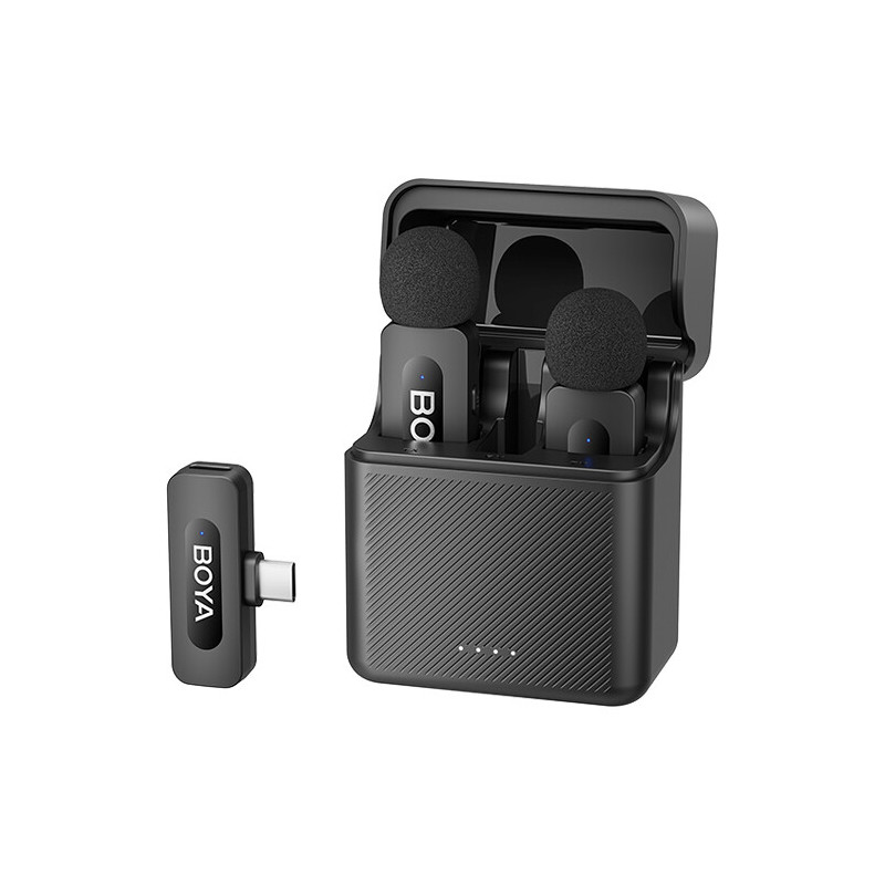 Микрофоните BOYA BY-V30 Dual Channel Wireless USB-C е ултракомпактна двуканална безжична микрофонна система, която включва два предавателя с вградени микрофони, USB-C приемник и заряден кейс, готов комплект за запис с мобилни устройства още от първия момент. Създадена за създатели на съдържание, мобилна журналистика и влогове, системата предлага бърза настройка чрез plug & play свързване и автоматично сдвояване, без нужда от допълнителни кабели или сложни конфигурации.