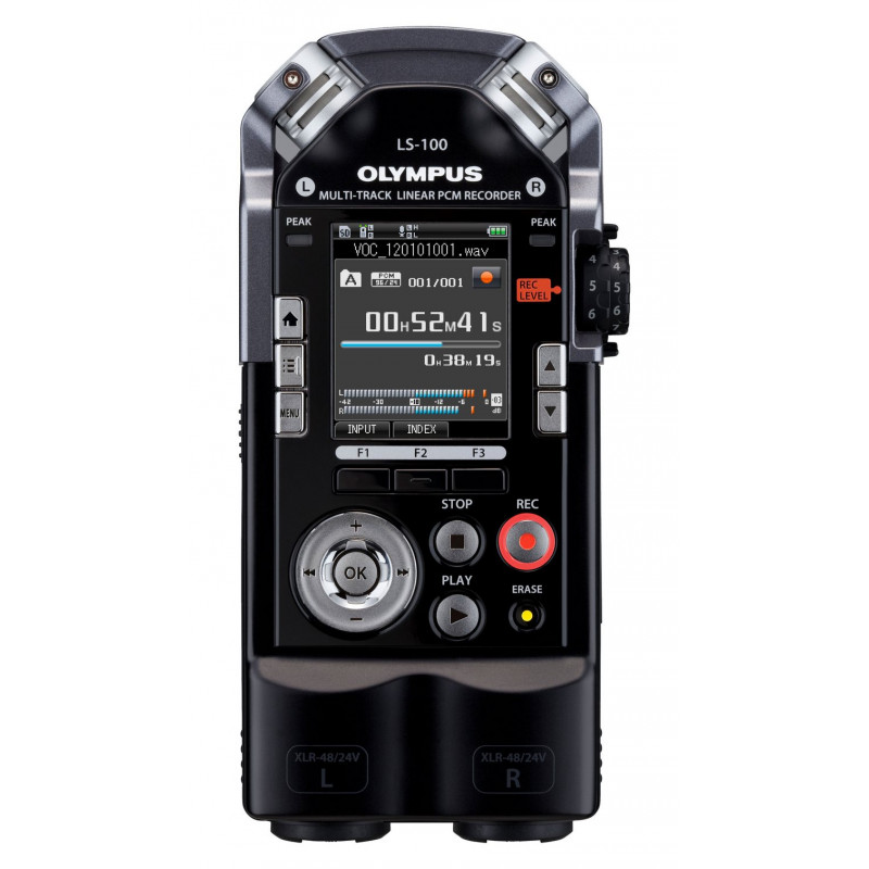 Иновативният LS-100 осигурява високо качество на аудиозапис и разнообразни възможности, които ще впечатлят дори и най-взискателните специалисти в музикалните и продуцентски среди и радиоизлъчването. Създаден за надеждна професионална употреба на работното място, той е снабден с редица високотехнологични функции, включително XLR връзка, индивидуална настройка за запис на L/R канал и фантомно захранване (48V/24V) за извличане на резултати на студийно ниво всеки път. Висококачествените насочени микрофони с ниво на звукозапис до впечатляващите 140dB и вградения усилвател са предназначени да извличат дълбоки и плътни аудиозаписи от шумни рок концерти до деликатни калсически инструменти. Резултатите от отличната, изцяло стерео система с насочени на 90° микрофони се подобряват от най-съвременни технологии като нискочестотен филтър и регулируемо ниво на чувствителност на микрофоните, което допринася за забележителния S/N бланс. Линейният PCM (24bit / 96kHz) запис се допълва от BWF (Broadcast Wave Format) формат и взъможността за многопистов запис, което дава възможност за редактиране, корекции и презапис от различни звукоизточници с максимална гъвкавост за постигане на отличен краен аудио продукт. Възможностите за предварителен, автоматичен и дистанционен* запис осигуряват още по-голяма функцоналност. LS-100 е професионалист във всеки аспект и гарантира преносим звукозапис на високо ниво. (*опция)