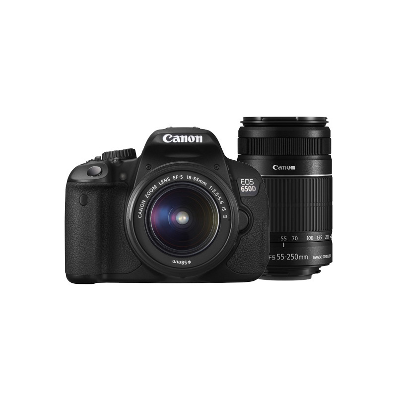 DSLR camera Canon EOS 650D + Lens Canon EF-S 18-55mm f/3.5-5.6 IS + Lens Canon EF-S 55-250mm f/4-5.6 IS