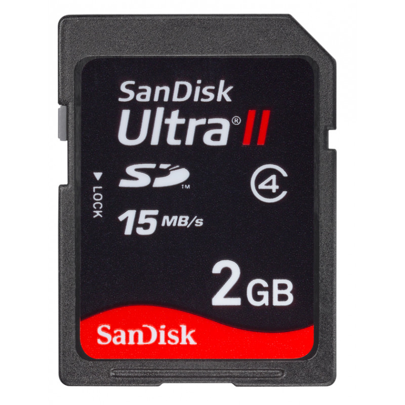 Code:254419079001- SD Type (SecureDigital) Capacity - 2GB Speed - up to 15MB / s Minimum Transfer Rate The Ultra II series cards are specifically designed for digital cameras that require high data transfer rate