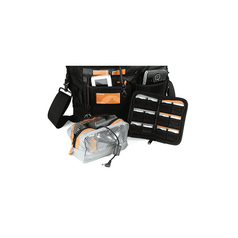 Code:260102020011- Compact bag for 1 professional SLR, 3-4 additional lenses, accessories Convenient and fast access to the device Front accessory pockets and memory pocket cards and filters Secure camera compartment with dual bottom and configurable