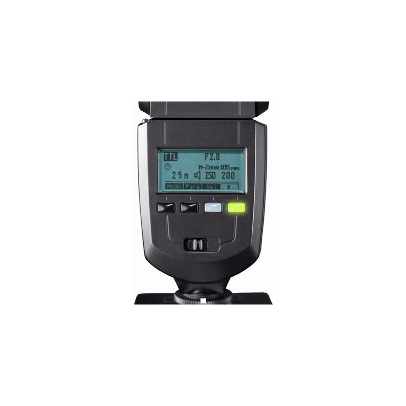Code:222813000003- Modifying light Strobe mode Motorized zoom mechanism Downloadable reflector card Second source - 3 levels of power ADI remote * ADI mode HSS high-speed sync Automatic switch off LCD display Metal slipper