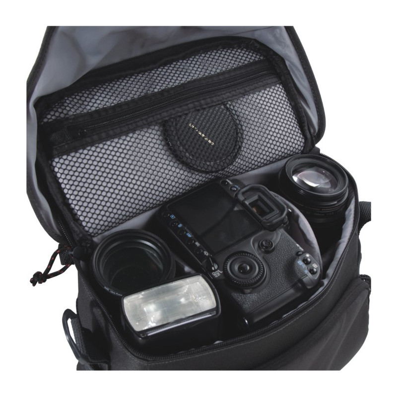 - Capacity: SLR with attached zoom lens, 2-3 additional lenses and accessories