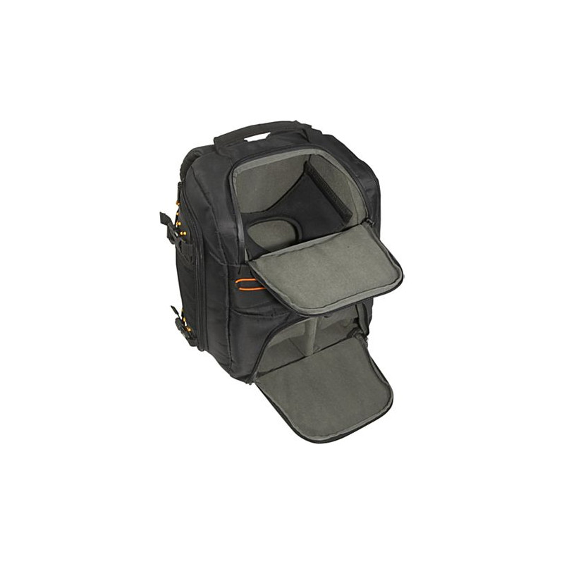 Code:261401010001- 1 SLR backpack with attached large zoom lens, 2-3 additional lenses and accessories Rubber zippers for better water resistance Convenient and fast access to the equipment and front and side accessory pockets Hard bottom and camera compartment