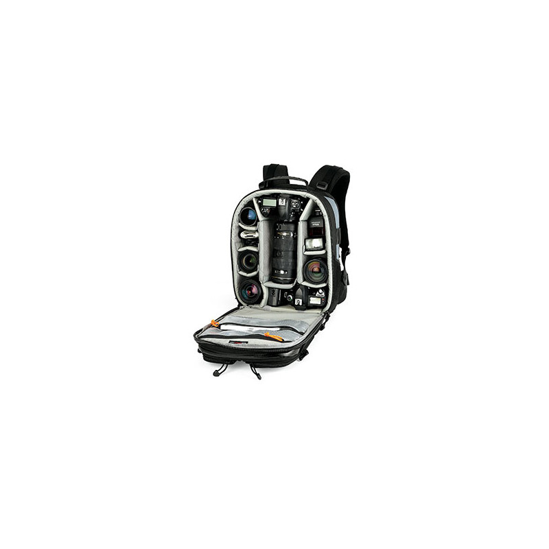 Code:262602010003- 1-2 professional SLR backpack, 35 mm mid-format system 3-5 additional lenses, flash and accessories Protected laptop compartment Convenient and fast accessibility Convenient large accessory pocket, built-in memory card pocket and camera protection compartment with configuration option