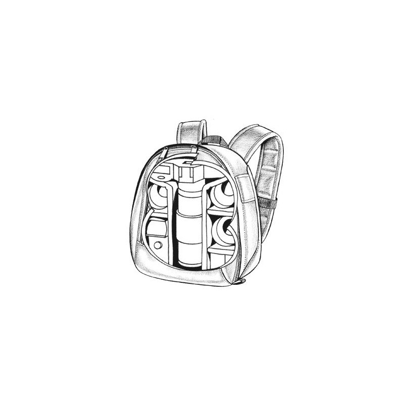 Code:262701010068- Compact backpack for 1 SLR, 2-3 additional lenses and accessories Convenient and fast access to the technology Padded straps and strap for even weight distribution Front accessory pocket and possibility of attaching additional lens cases Protected camera compartment with configuration