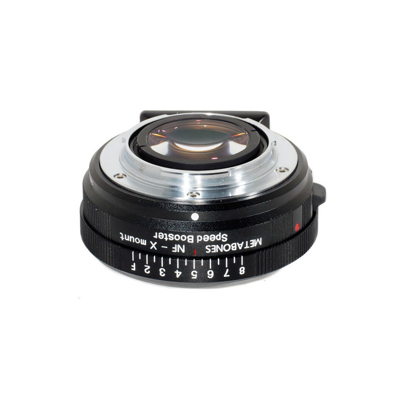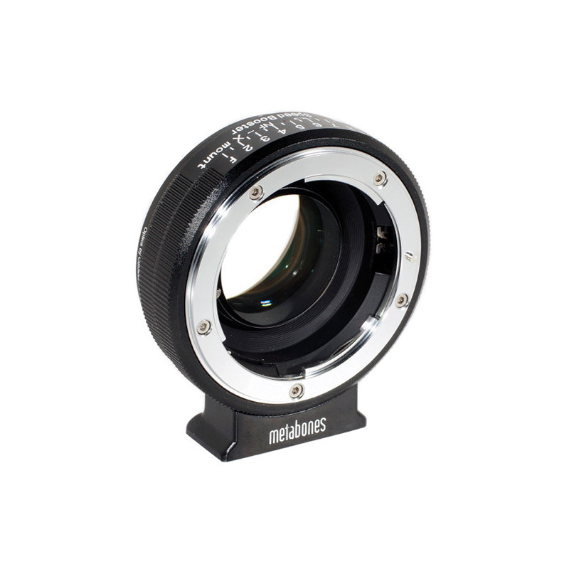 Code:241308601810- Speed Booster is a Nikon F lens mount adapter for a Fuji X camcorder Camera uses optics designed by Caldwell Photographic for double zooming of the attached lens without any deterioration of quality Aperture ring with 8 checkmarks for precise nonlinear aperture control Fifth to fasten a tripod