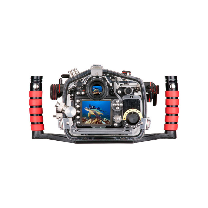 Не е предвиден контрол за: зоните на измерване на експозицията, корекция на диоптъра и вградена светкавицата.Плавателност варира в зависимост от избора на обектив и порт.