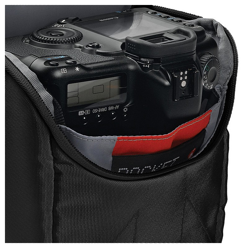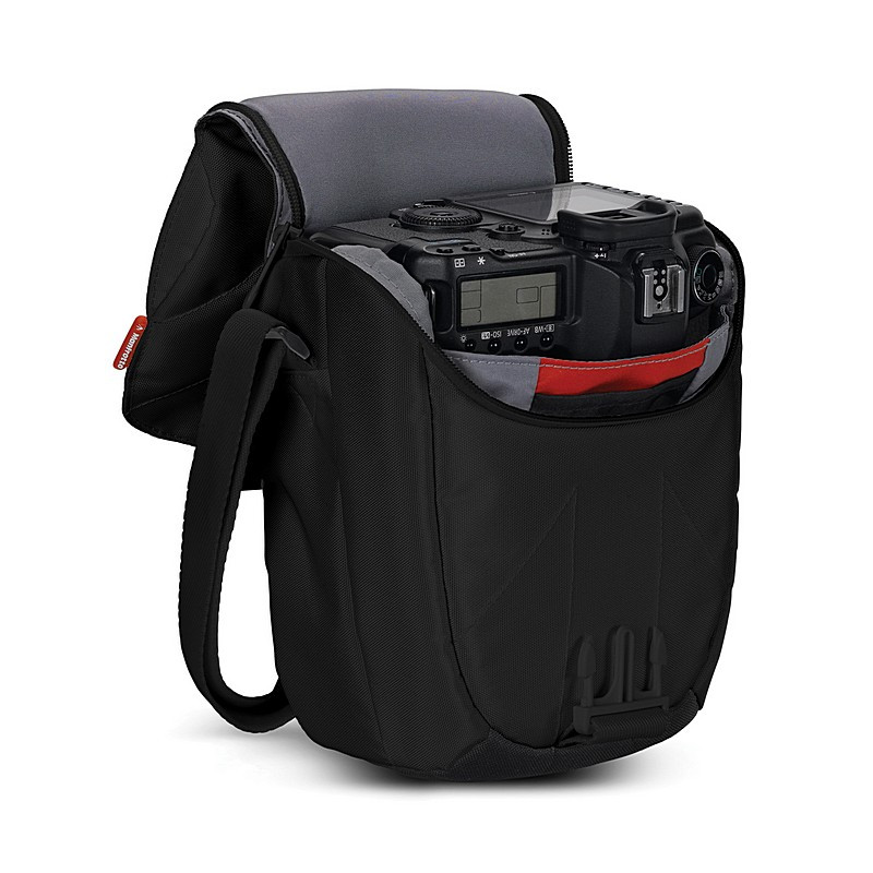 Code:268310600005- Solo IV is a "holster" bag made of water-repellent and wear-resistant materials. Collects a DSLR camera with a hooked lens (for example, 17-55 / 2.8) in a convenient position for fast subtraction. There is also a front pocket for accessories such as batteries, cables, memory cards, and so on. There is also a small pocket for the Manfrotto Pocket tripod (for example MP1-BK), which of course can be used for other accessories. The double-secured closure (zippered and top cover) provides maximum protection against moisture, dust and theft. The comfortable and wide shoulder strap provides maximum comfort when worn both for a short walk and for a longer transition. 3 years after signing up on www.manfrotto.com