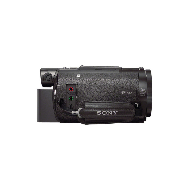 The Sony FDR-AX33 4K HandyCam is a camcorder that has Balanced Optical SteadyShot stabilization to deliver high quality, clear 4K video. The camera is equipped with a Zeiss Vario Sonnar T * stabilized zoom lens with 10x optical zoom and features an Exmor R CMOS sensor and a Bionz X Image processor. Videos and photos are recorded on a Memory Stick Duo or SD memory card, and on the 3-inch Xtra Fine LCD touch screen you can watch and play the recorded video. The Sony FDR-AX33 4K HandyCam offers a variety of automatic image and audio options and enhanced manual settings for greater creative freedom. In front of the camcorder is a programmable ring that can be used to control magnification, focus, exposure, shutter speed, and more.