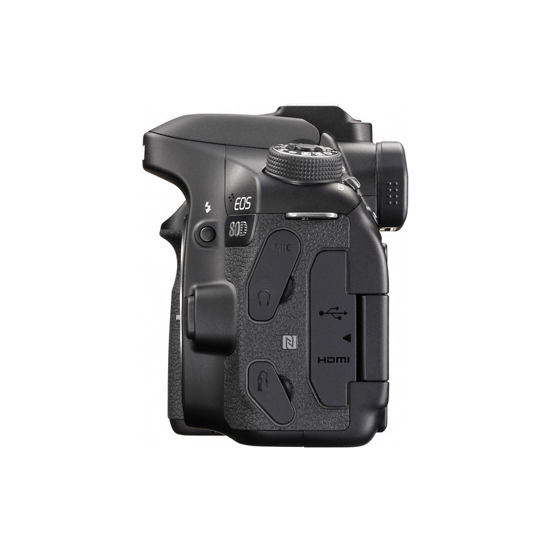 Discover your creativity with the Canon EOS 80D - a powerful camera suitable for sports, portrait, landscape and street photography as well as video production. The camera offers exceptional image quality full of detail, color and atmosphere thanks to its 24.2 megapixel APS-C CMOS sensor and DIGIC 6 processor. The smart viewfinder has almost 100% coverage, and the Vari-Angle Clear View LCD II display lets you compose at any angle. Dual Pixel CMOS AF gives you accurate autofocus and smooth video transition with up to 1080p resolution and 60fps. The Wi-Fi and NFC connectivity of the EOS 80D with compatible smart devices lets you easily and quickly share your photos and videos.