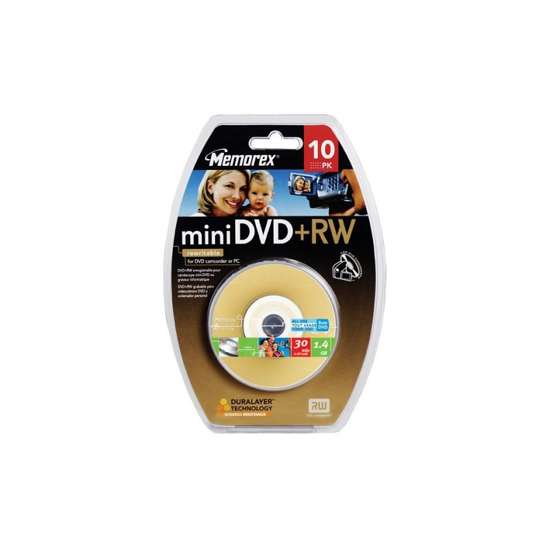 Code:650301030001- 5 pcs. mini DVD-R in individual Slim Jewel Case Capacity 1.4 GB / 30 min Maximum recording speed 1-2h Suitable for digital video cameras