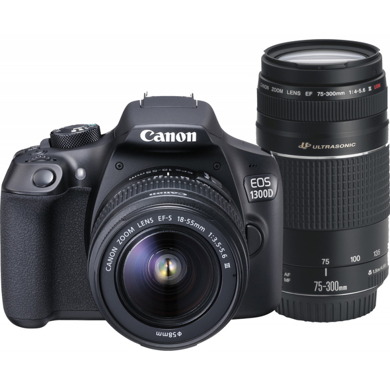 DSLR camera Canon EOS 1300D + Lens Canon 18-55mm F/3.5-5.6 DC III + Lens Canon 75-300mm f/4-5.6 USM