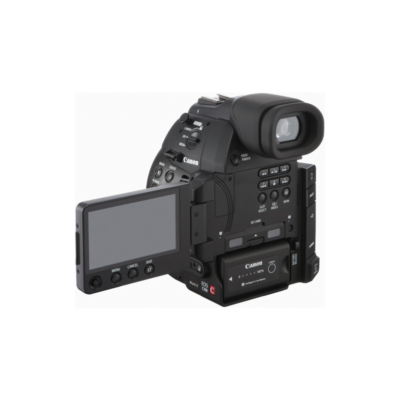 The Canon C100 EOS C100 Mark II Cinema Dual Pixel AF is the successor to the Canon C100 for event, documentary and independent filming. The camera comes with an 8.3MP Super 35mm CMOS sensor and a new video processing system that delivers superb high-resolution images, low noise levels, and also reduces rolling shutter effect and shallow sharpness. The Canon Log Gamma delivers 12 stops of dynamic range, while the Wide DR Gamma delivers wide dynamic range by suppressing brightness while maintaining nuance. The C100 Mark II also has a number of enhanced features, including Face Detection AF, Slow & Fast Motion options for MP4 recording, an additional body microphone, a higher resolution OLED display, and an electronic viewfinder larger and more mobile. The EOS C100 Mark II Cinema Dual Pixel AF is compatible with the full Canon EF, EF-S and EF Cinema lens range.