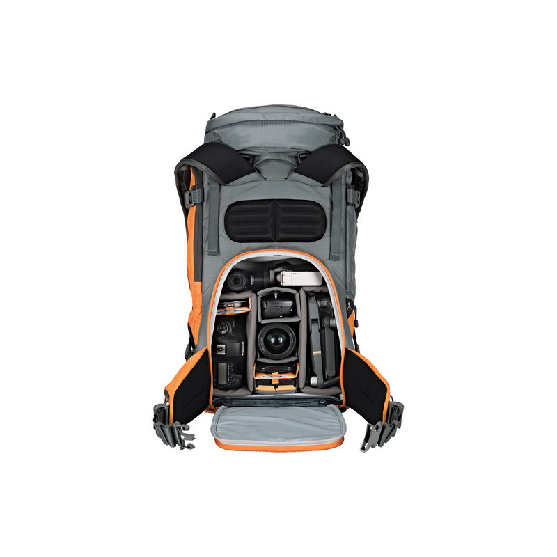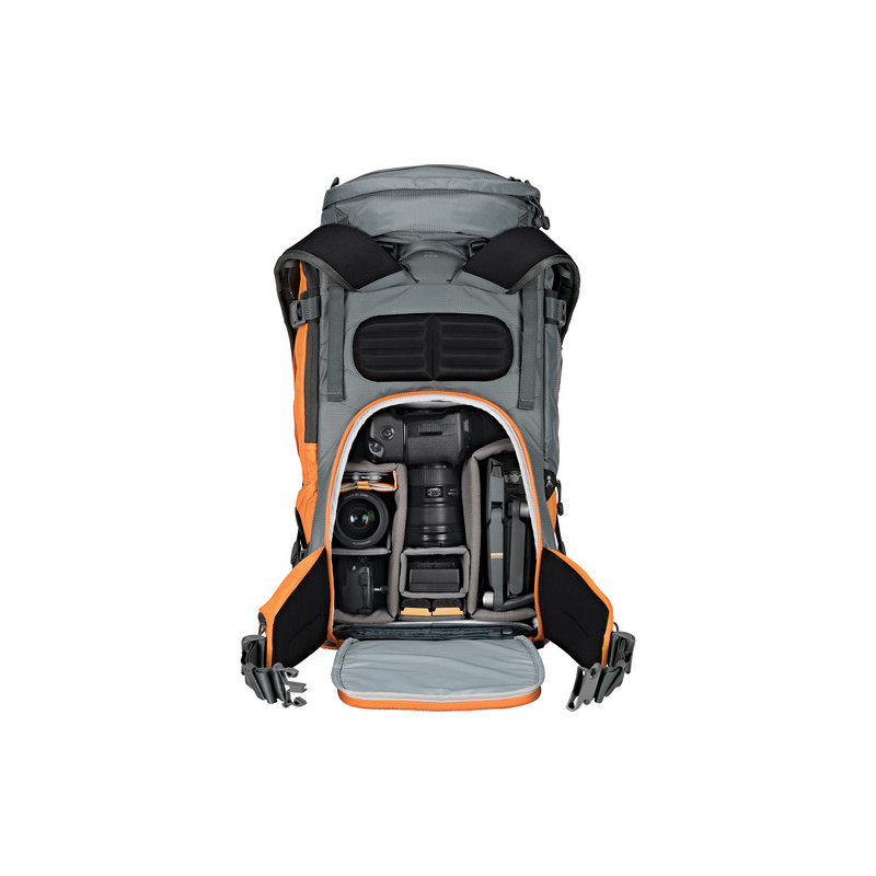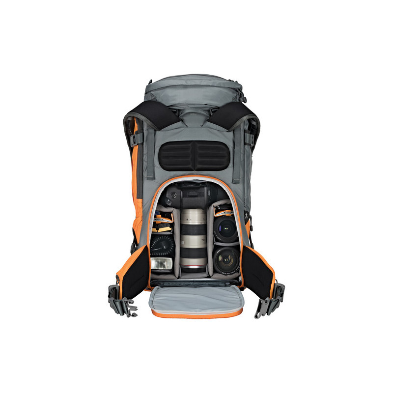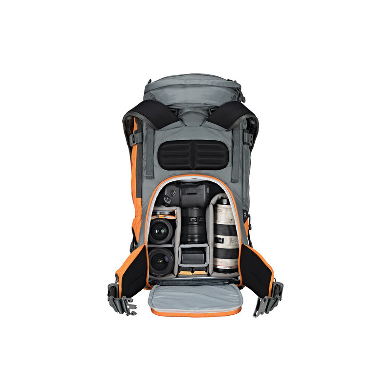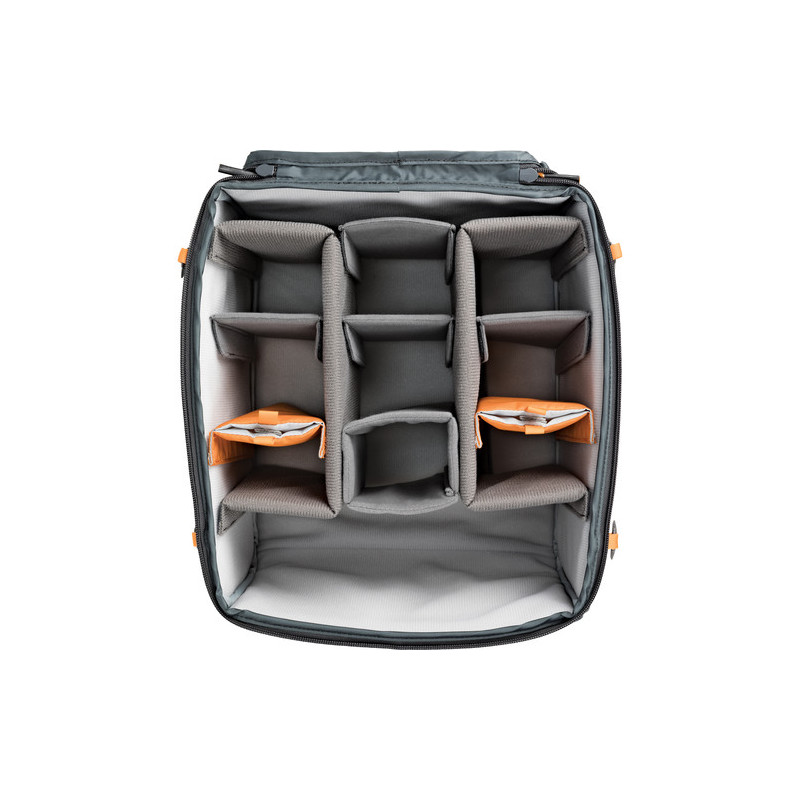 The spacious main compartment features a mobile system with adjustable dividers that allow the space to be reconfigured according to personal preferences. It fits you two DSLR cameras with 16-35mm, 24-70mm and 70-200mm lenses or a mirrorless camera with three to five lenses. When you put the module in the backpack you can fix it and have trouble-free access to the cameras and lenses through a separate opening.