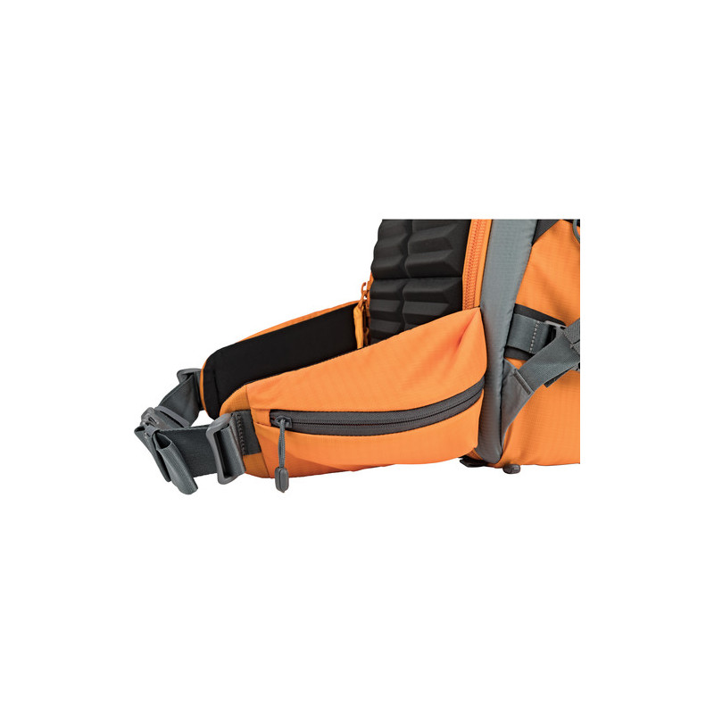 Lowepro Powder BP 500 can be worn by the sturdy top handle or via the adjustable, padded shoulder straps. For heavy loads, the waist belt transfers the weight to the hips for added comfort.