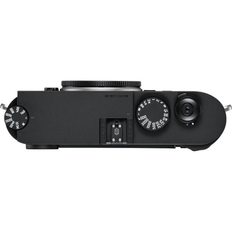 As with other M10 cameras, the M10 Monochrom body design is reminiscent of Leica M film cameras, and the larger 0.73x zoom optical viewfinder allows for more composite and focusing. The Leica M10 Monochrom is equipped with a dedicated ISO display to quickly adjust the setting even when the camera is off, and the rear 3-inch 1.04-megapixel touchscreen features Gorilla Glass to prevent scratches and shocks. The upper and lower body panels are made of brass and the chassis is made of magnesium alloy.