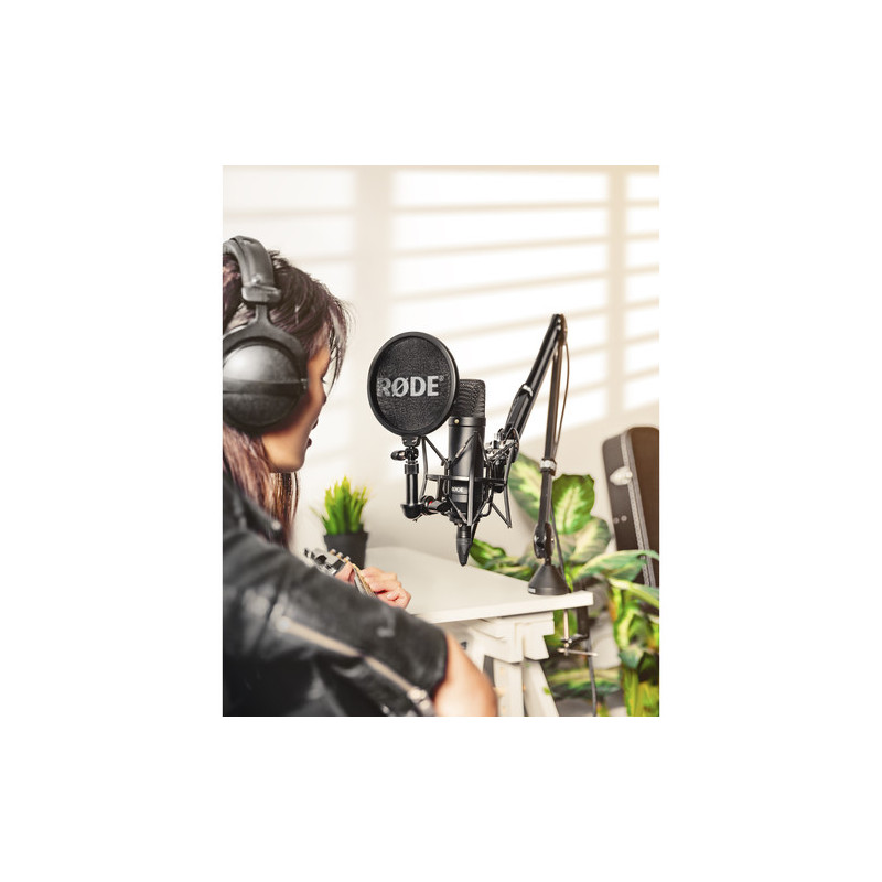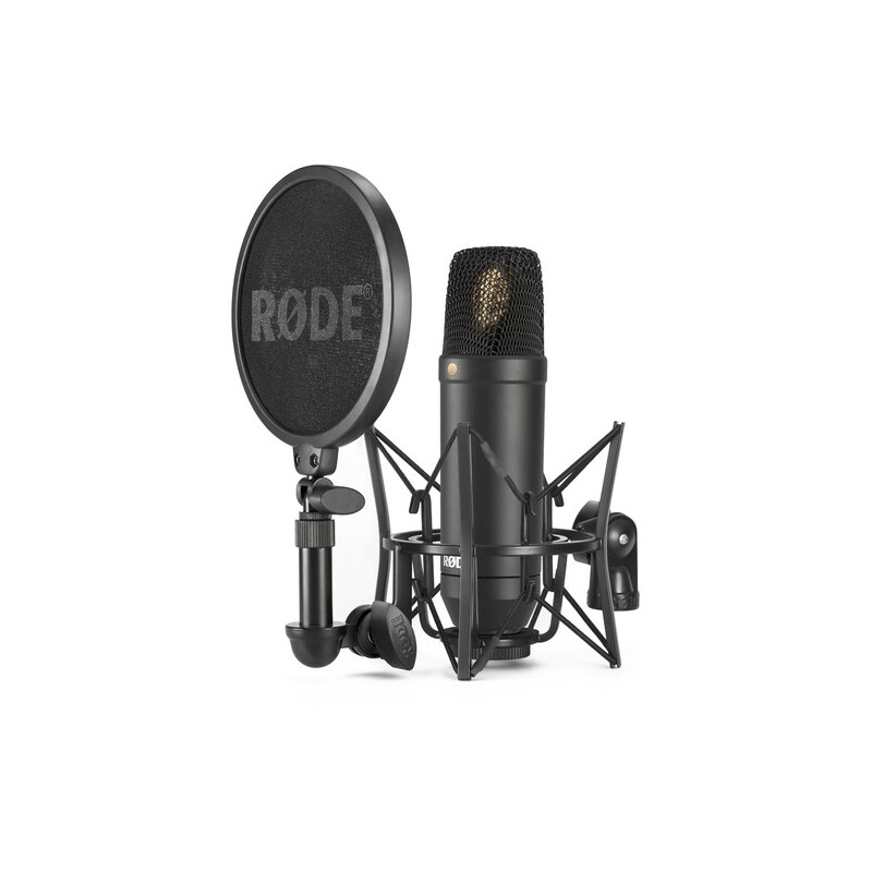 Rode NT1 Kit is a kit that contains a Rode NT1 microphone and a Rode SMR Premium Shock Mount microphone mount with a pop filter.