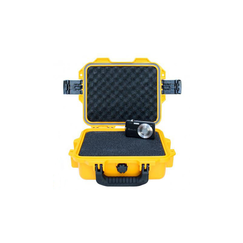 It is made of light and strong HPX resin , which makes it extremely strong and resistant to shocks and dents. A full-length neoprene o-ring creates a reliable seal. Innovative latches open easily with a push and pull, but stay firmly closed under impact or strain. Reinforced holes allow the addition of a standard size padlock, and an automatic pressure equalization valve is activated when needed. Sturdy hinges keep the lid open even when bumped or shaken.