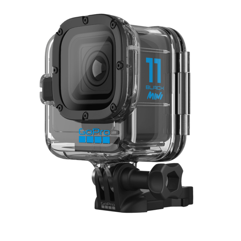 The GoPro HERO11 Black Mini action camera is a super compact model with simplified one-button control and ready-made optimized settings. It captures 5.6K 60p, 4K 120p, and 2.7K 240p video with QuikCapture with HyperSmooth 5.0 (Emmy Award-winning) stabilization, and with the Quik app, video can be extracted to 24.7-megapixel stills.
