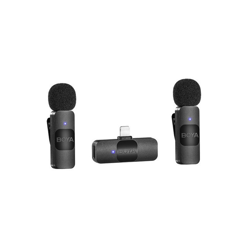 - Includes 2 transmitters with built-in omnidirectional microphones and a 2-channel receiver with a Lightning connector
