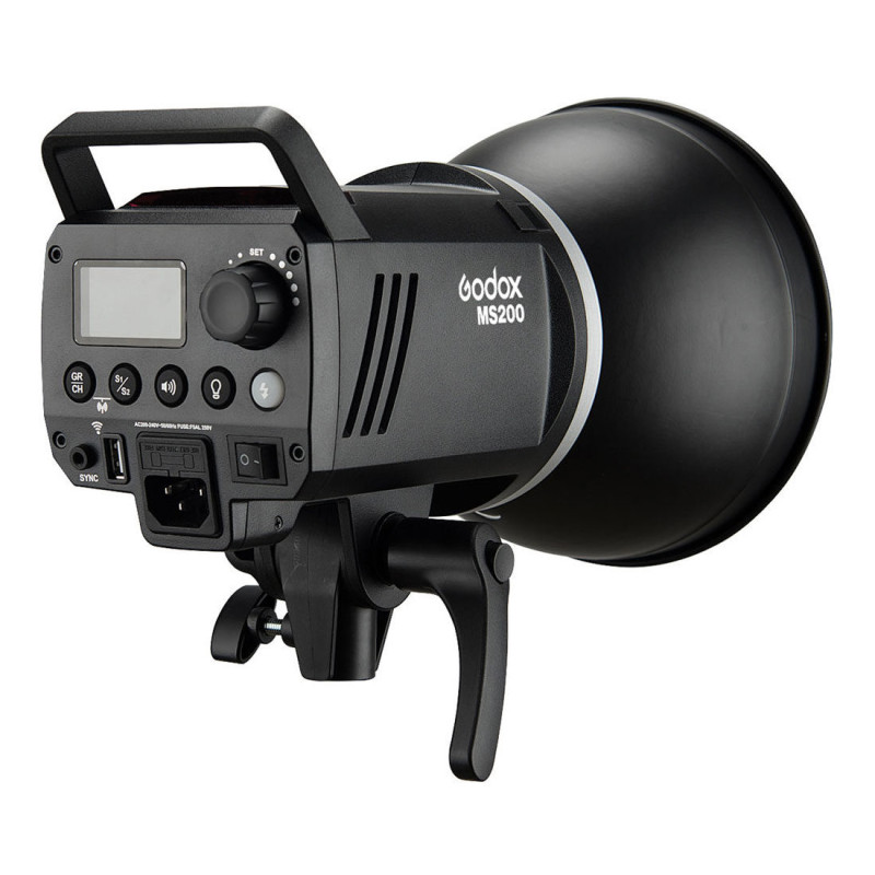The Godox MS200-V Studio Flash is a compact model with a guide number of 53 m (ISO100), a color temperature of 5800 K and a 10W modeling LED lamp.