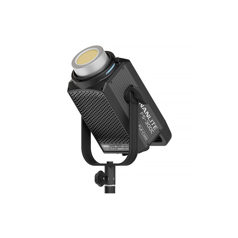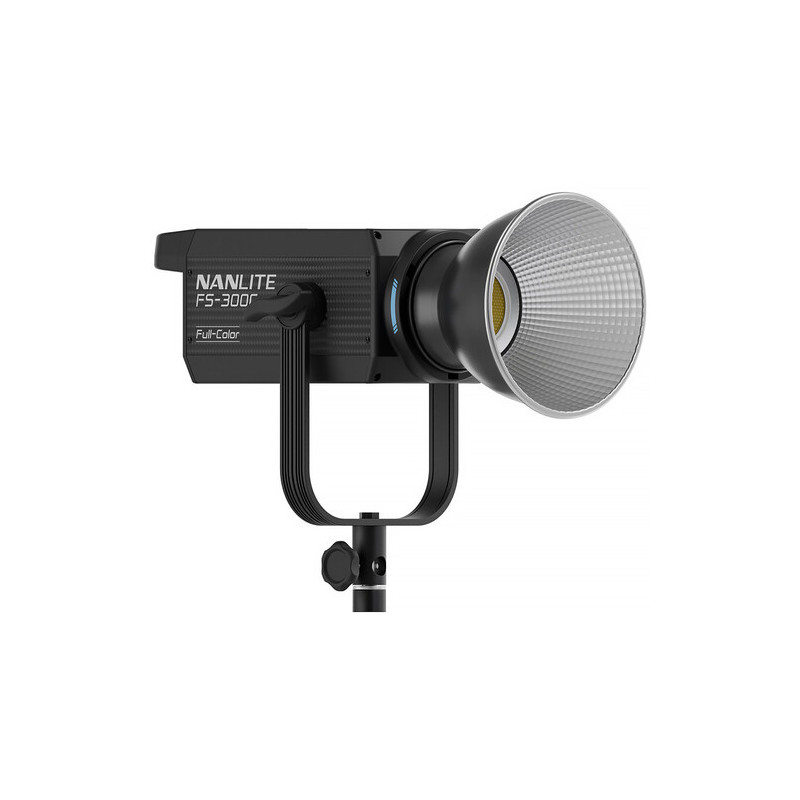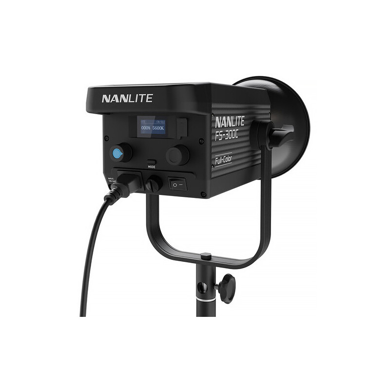 The Nanlite FS-300C RGBWW AC LED Monolight uses a large LED area and provides up to 34,200 Lux at 5600K at 1m with the included 55° reflector, as well as a smooth and even light distribution without hot spots when used in a softbox. It also has advanced functions: maximum output mode (provides full output power) and constant output mode (maintains constant intensity across the CCT range).