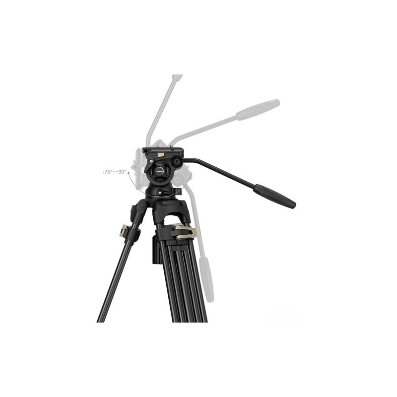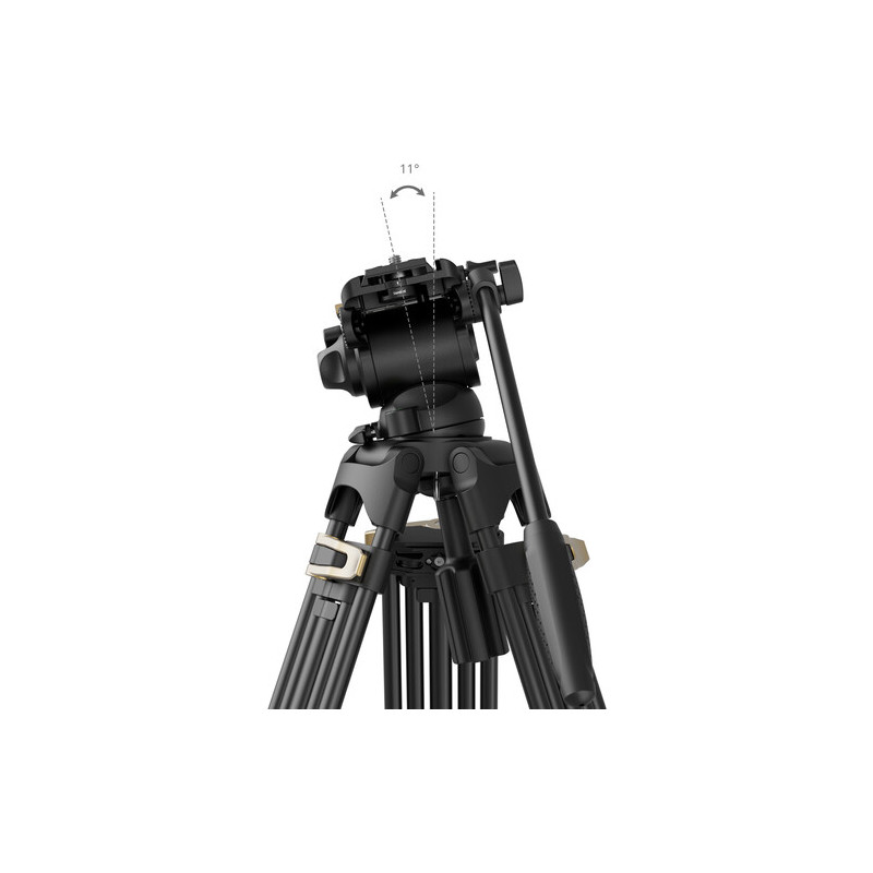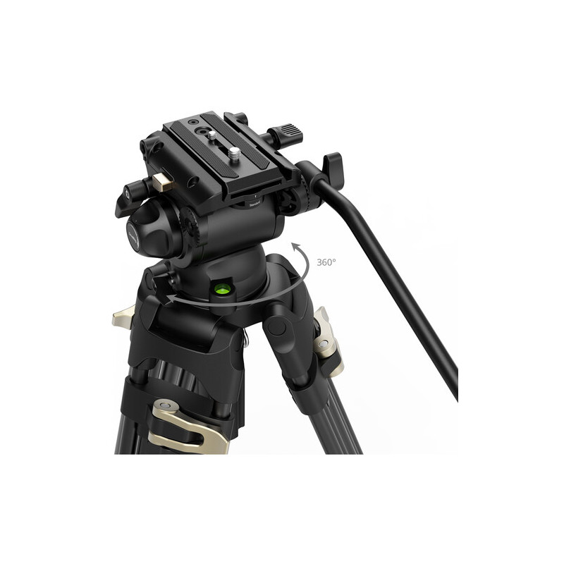The fluid head features a new Manfrotto-style quick-release plate and a fixed counterbalance, making the tripod compatible with a wide range of professional video cameras. The 75mm ball head can rotate 360° and tilt +90/-70°, while the QR plate features 1/4"-20 and 3/8"-16 mounting screws for maximum compatibility with all cameras.