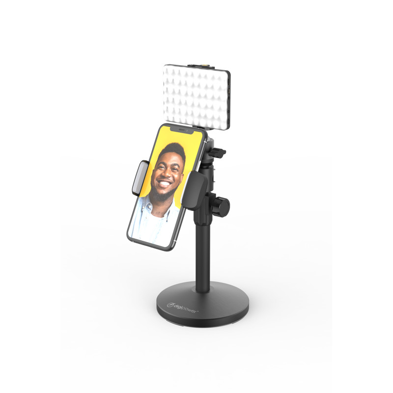 Digipower Achiever Video Call Pro Kit is a fully equipped solution for creating high-quality content that combines everything you need - a powerful 60 LED video light with adjustable brightness and three levels of color temperature, a stable mini tripod with adjustable height and 360° rotating head, a universal smartphone holder with a reliable grip and the ability to shoot horizontally or vertically, as well as a cold-shoe adapter for mounting on phones, cameras or tripods.