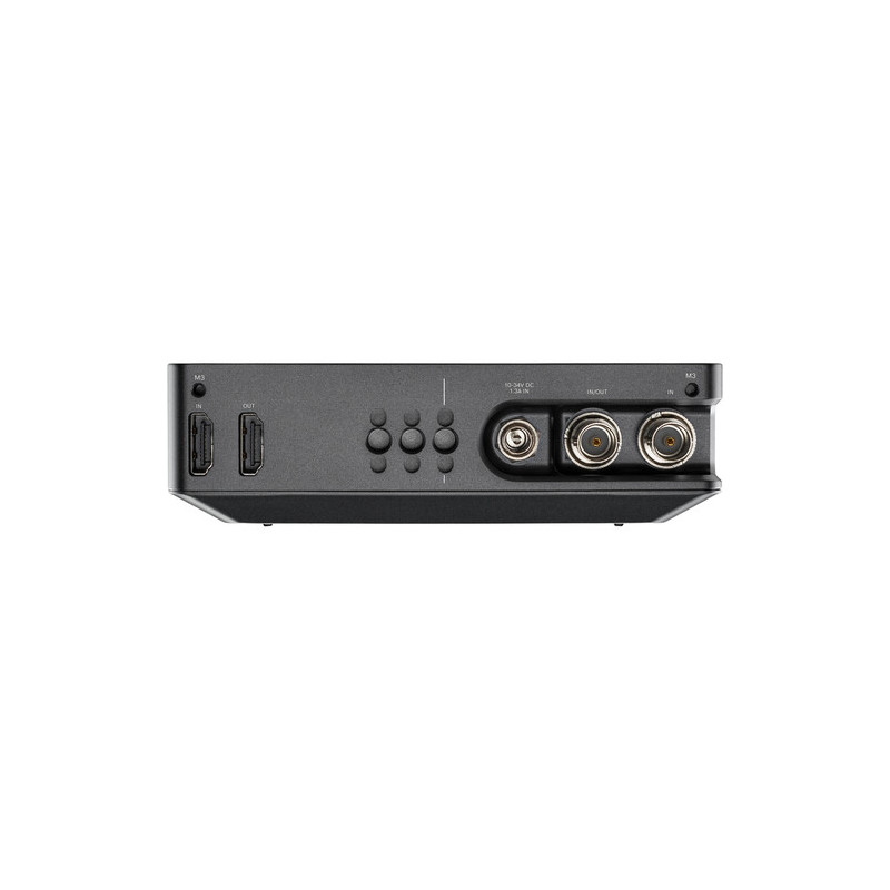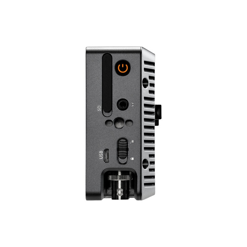 The monitor has an aluminum housing that offers high durability in demanding shooting environments. It is powered by a DC input, allowing flexible use with external batteries and power supplies. It is equipped with four 1/4"-20 mounting threads on all sides, providing flexibility in integration with various accessories and rig systems.