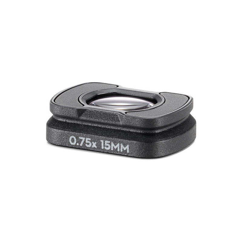 The DJI Pocket 3 Wide Angle Lens is a wide-angle lens with magnetic attachment, compatible with both the DJI Pocket 3 action camera and the original Osmo Pocket. The lens provides the equivalent focal length of 15mm, increasing the FOV of the DJI Pocket 3 to 108° and the DJI Osmo Pocket to 90°. In addition, the lens can also be used with the underwater case.