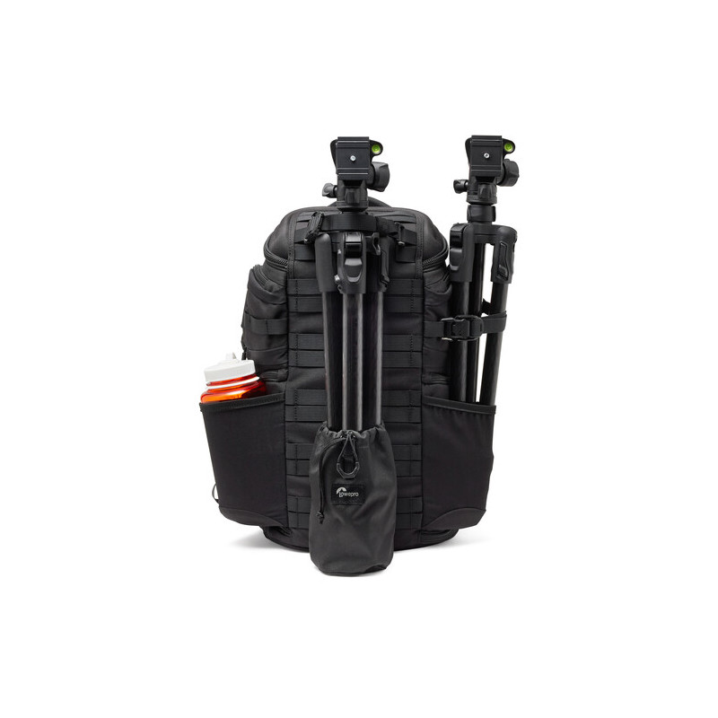On the outside, there are expandable pockets with reinforced bottoms, perfect for tripods or water bottles, as well as a hybrid webbing system compatible with SlipLock accessories and MOLLE/PALS modular pouches. Additional Quick Straps allow for attaching bulky items to the outside of the pack.