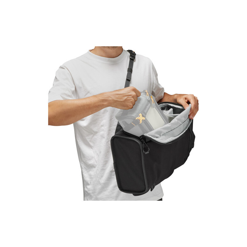 A large front pocket holds bulky items like a jacket or headphones, while a side expandable pocket holds a water bottle or tripod. A hybrid external webbing system allows for the addition of additional accessories via SlipLock™, MOLLE or PALS systems.