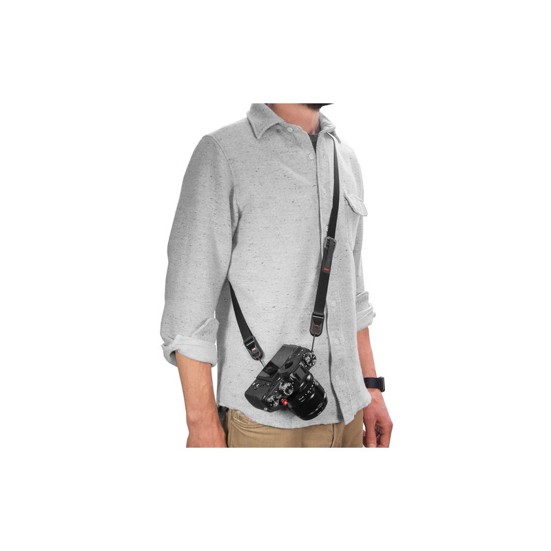 Strap Leash can be worn as a neck or shoulder strap, as well as a sling regardless of whether the user is right-handed or left-handed. The length of the strap is adjustable from 83 to 145 cm with the help of two low-profile mechanisms that allow quick adjustment during use.